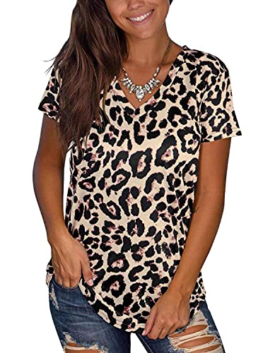 Il top basic offre uno stile chic e indossabile che presenta uno scollo a V, maniche corte, stampa animale, orlo alto basso detial e una vestibilità rilassata.