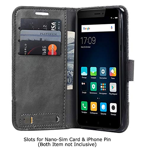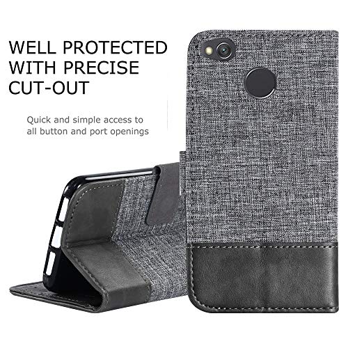 Adrian B Gonzalez Custodia Xiaomi Redmi 4X, Custodia a Portafoglio in Vera Pelle di Design a Vibrazione per Xiaomi Redmi 4X (Colore: Grigio)