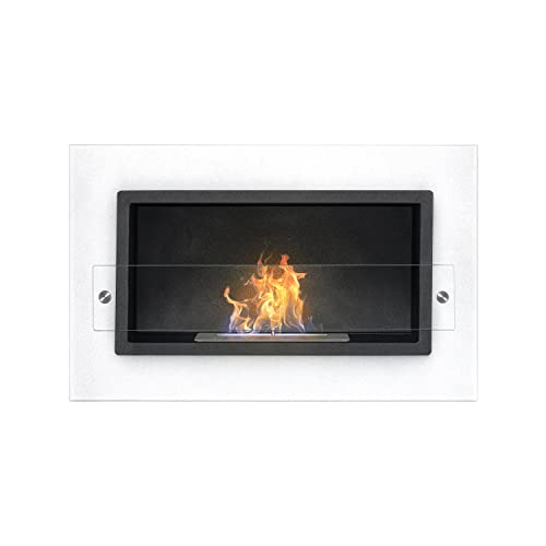 Adriano - Caminetto a bioetanolo da incasso con 1 bruciatore da 1.5L. Camino a bioetanolo in acciaio inox e vetro temperato. 64x40 cm colore bianco
