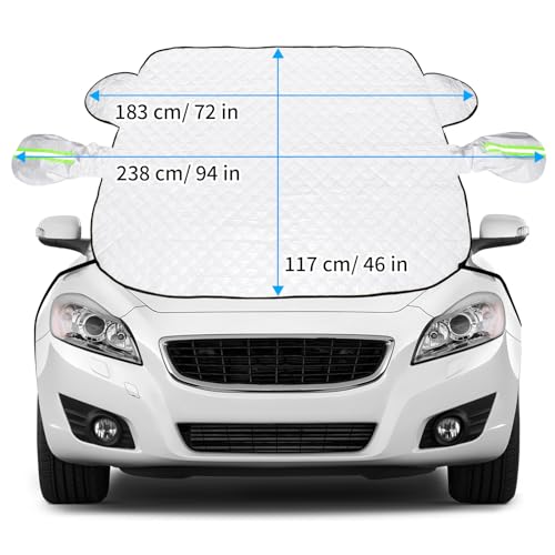 ☀【 Dimensioni Applicabili 】La dimensione del copri parabrezza auto la neve è 148 x 117 cm, la dimensione espansa 238x117 cm, adatto per le auto di piccole, si prega di misurare il vostro veicolo prima dell'acquisto per assicurarsi che la copertura del parabrezza si adatta.