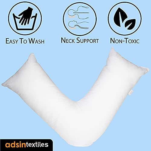 Adsin, cuscino ortopedico a forma di V per allattamento, gravidanza, grande cuscino di supporto per la schiena, anallergico, bianco