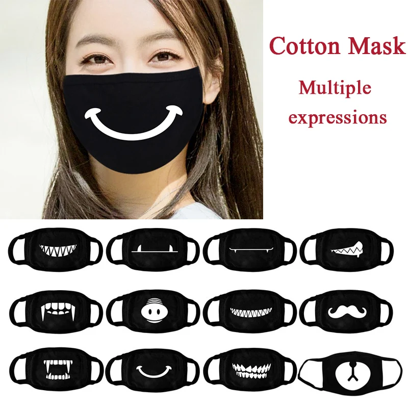 Adult Cotton Face Mask Black Printed Reusable Protective Masks Outdoor Mouth Caps Washable Dust-proof Mouth Mask Mascarillas