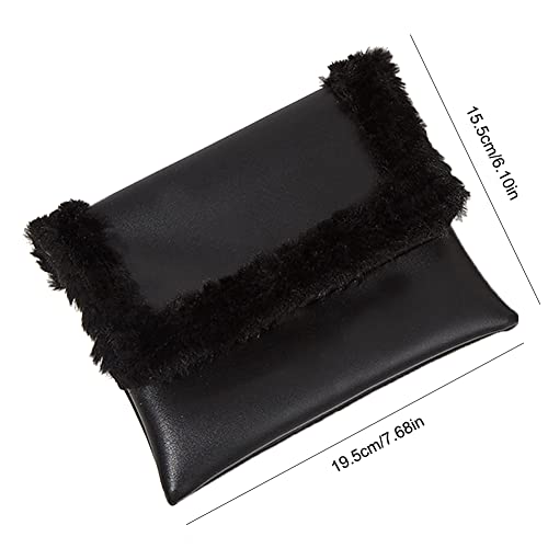 Adurello Pochette Donna Elegante Clutch con pelliccia, Pochette Borsa a Busta Organizer da Cerimonia, Sera, Festa, Matrimonio, 19,5 x 15,5 cm