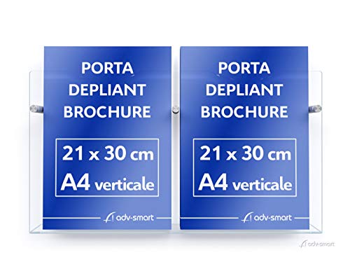 Adv-smart Porta Depliant Brochure da parete DOPPIO A4 verticale 21x30 cm - Espositori in Plexiglass con fissaggi in acciaio