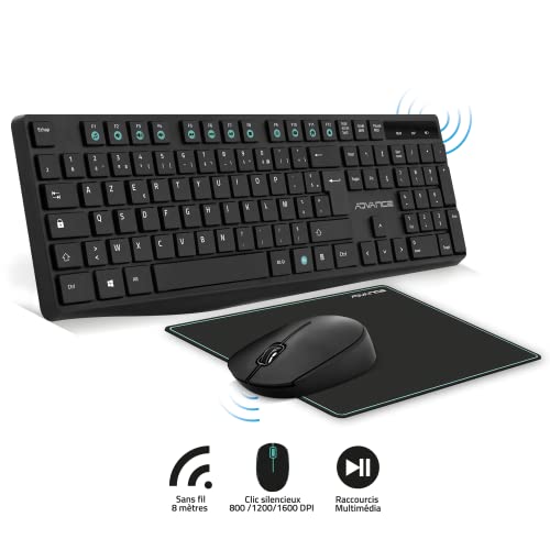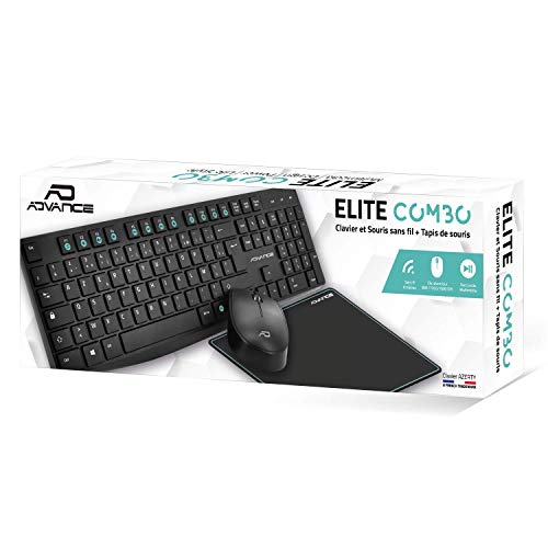 Pack 3 en 1 (Clavier/Souris/Tapis) Advance compatible Elite Wireless Combo (Noir)