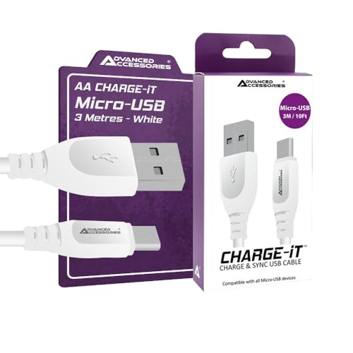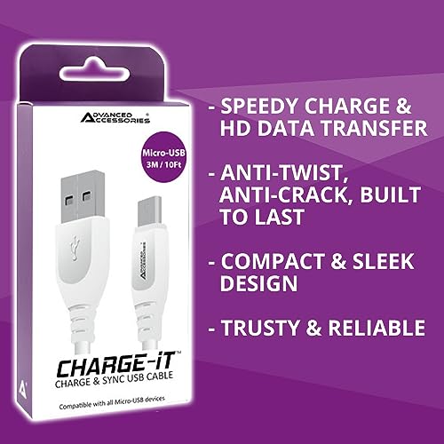 Advanced Accessories Charge-iT - Cavo micro USB per PS4, 3 m, trasferimento dati HD, test di piegatura 8000+, ricarica rapida, per telefoni Android, Samsung Galaxy S7, Amazon Kindle Fire