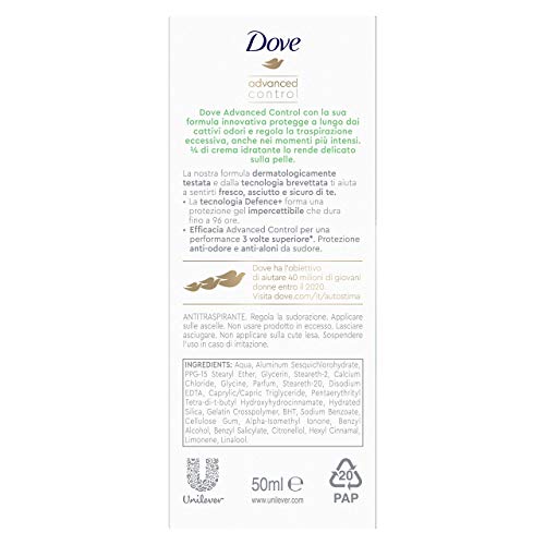 Efficacia Advanced Control per una performance 3 volte superiore rispetto a Dove aerosol antitraspirante