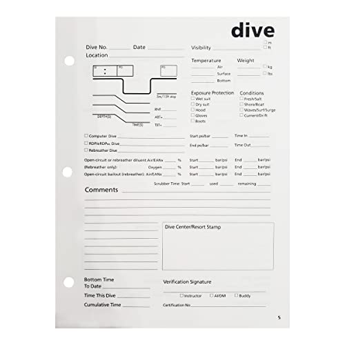 PADI Adventure Log 25 Refill Pages,50 dives, for Scuba Diving