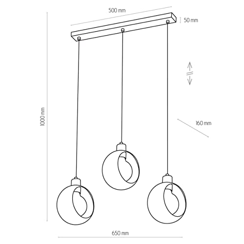 Adviti JALA 3P Lampadario a Sospensione E27 max.15W Nero (lampadine non incluse) (3 sorgenti luminose)