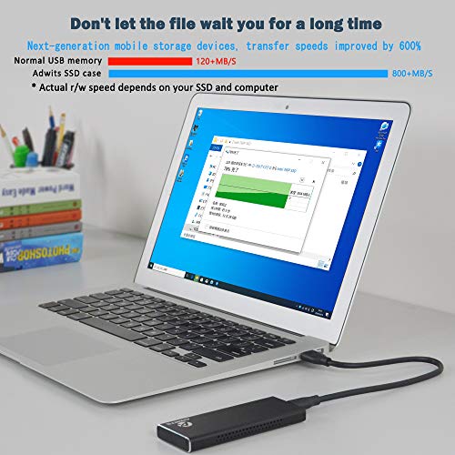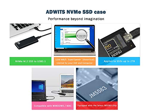 ADWITS USB 3.1 Gen2 10Gbps da Tipo C a NVMe M.2 Adattatore SSD PCIe ad alte prestazioni, custodia SSD portatile compatibile per Samsung WD ADATA, unità a stato solido DREVO M.2 NVMe-Nero