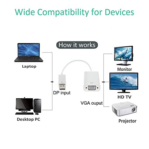 ADWITS Adattatore da DP a VGA consente il collegamento di laptop o desktop dotati di DisplayPort (DP, DisplayPort ++, DP ++) a monitor, display, proiettore o HDTV con ingresso VGA