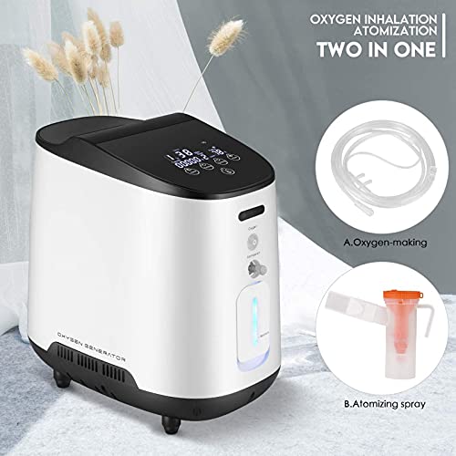 ADZHY Concentratore di Ossigeno con 30% - 93% di purezza 1-7 L/min Macchina di Ossigeno Intelligente Regolabile per la casa, Funzione di temporizzazione e Telecomando Wireless, Consegna Veloce,A