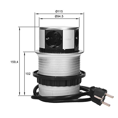 Orno AE-1341(GS) Presa Multipla a Scomparsa a 4 ingressi 3650W max Ø 10 cm con cavo Schuko da 1,5 m