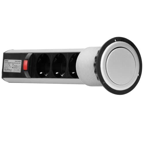 ORNO AE-1347(GS) Torretta Multipresa Estensibile dall'Alto con Blocco e 3 Prese Lunghezza Cavo 1,8 m Carico Max 3680W (plastica + metallo verniciato)