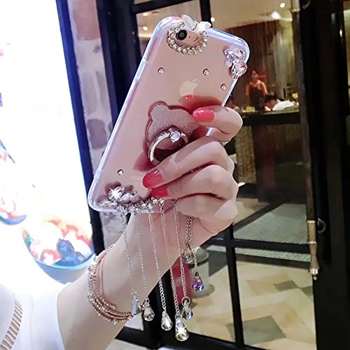 Aearl Custodia iPhone 6/6S Brillantini Lusso Bling Diamante Cristallo Strass Creativo Nappa Disegno Clear Trasparente Anti-Scratch Dura Plastica PC Rigida Cover -Diamant Pink