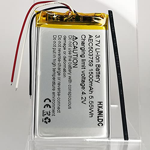 ★AEC503759 batteria ricaricabile ai polimeri di ioni di litio, tensione nominale 3,7 V, tensione di carica completa 4,2 V, capacità 1500 mAh, potenza 5,55 Wh, dimensioni 2.362 x 1.456 x 0.196 pollici (60×37×5 mm) (L*W*T), Peso: 1,037oz (29,4g) (corrente massima: 1,5A) può prevenire sovraccarico, scaricamento eccessivo, sovracorrente e cortocircuito.