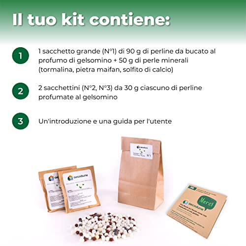 SCELTA ECOLOGICA: le nostre ricariche per palla lavatrice aecodune reinventa il lavaggio ecologico Premium. Le nostre perle di lavaggio sono naturali, fatte con saponine(da noci del sapone) e altri ingredienti che non inquinano l'acqua. Le nostre perle e sfere minerali sono riciclabili e puoi restituirle alla natura usandole nelle tue piante. Il nostro imballaggio è compostabile e riciclabile al 100%. Niente più brocche di plastica di detersivo liquido!