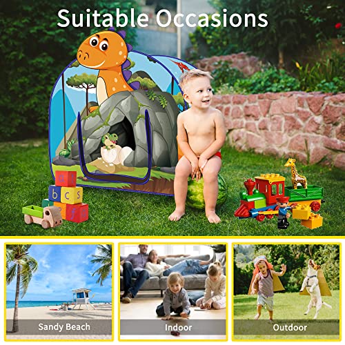 Aedcbaide Dinosauro Tenda per Bambini, Tenda da Gioco per Ragazzi e Ragazze, Pop Up Capanna per Bambini Esterno Interno Borsa Portatile, Giochi a Tema Dinosauri