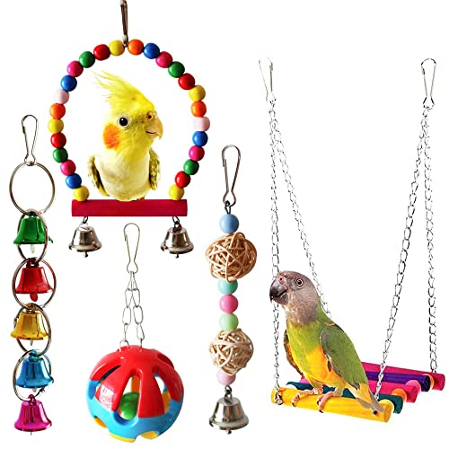 Aedcbaide 5 Pezzi Giochi per Uccelli Pappagalli, Altalene per Uccelli Colorato Giochi per Parrocchetti Giocattolo da Masticare per Cockatiels, Pappagallini e Uccelli Adorabili