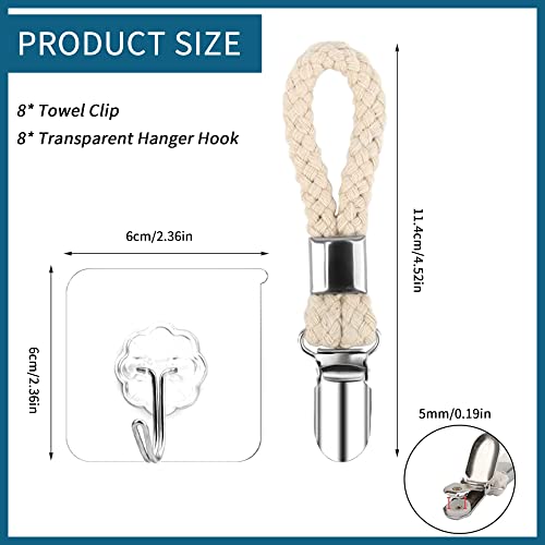 Aedcbaide 16 Pezzi Clip Grande Per Strofinacci Da Tè, porta asciugamani da tè e appendiabiti da parete trasparente, clip per appendini in cotone intrecciato con ganci, asciugamano da appendere