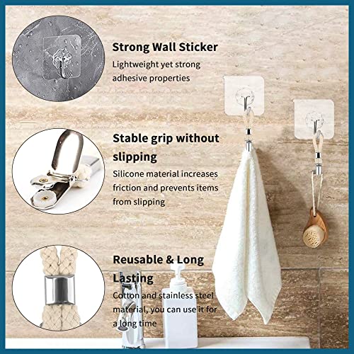 【Porta strofinacci e appendiabiti da parete】: i nostri porta strofinacci sono progettati con robusti passanti per appenderlo, che aderiscono bene e non cadono facilmente. Fermagli per strofinacci in metallo con corda di puro cotone, dotati di quattro ganci da parete trasparenti, non devi preoccuparti che i ganci già pronti in casa siano troppo piccoli per stare sul cordino.