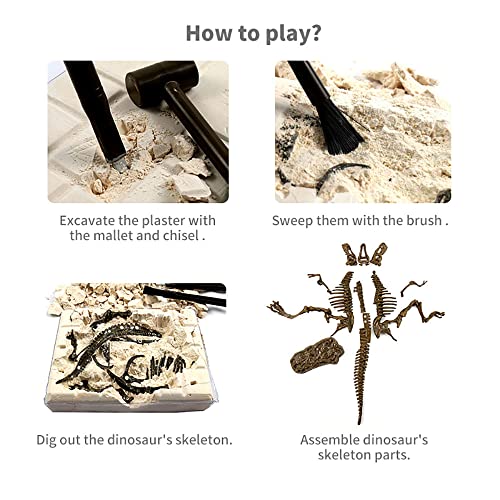 Regalo ideale per bambini: i giocattoli educativi archeologici consentono ai bambini di esercitare le loro abilità pratiche e di osservazione durante il gioco e stimolano la loro creatività e immaginazione. I bambini possono anche apprendere le conoscenze storiche sui dinosauri e coltivare il loro interesse e i loro sogni nella scienza. È il miglior regalo per i bambini a Natale, Halloween, Capodanno e altre festivi