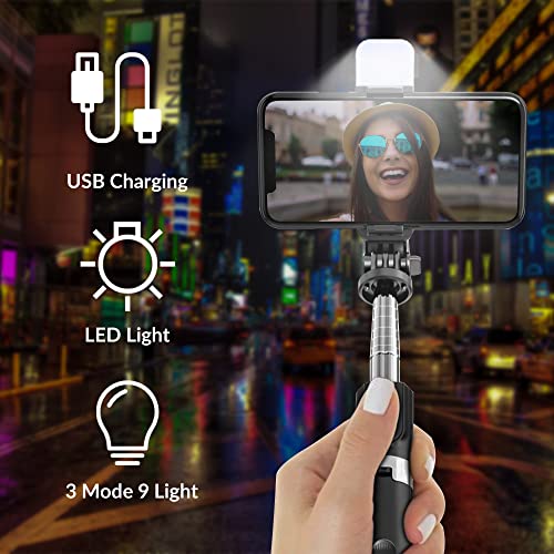 Aedcbaide Selfie Stick Riempi con 8 Livelli, Selfie Stick Bluetooth 3 in 1 Estensibile con Telecomando Wireless Rotazione a 360°, Caricatore USB Selfie Stick Treppiede per iPhone 13 e Smartphone