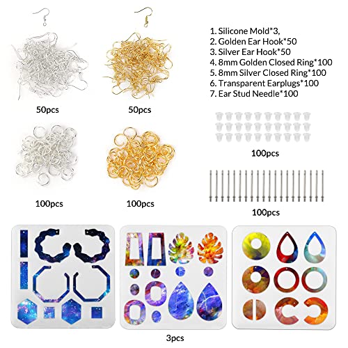 Aedcbaide Kit di stampi per colata di Resina Fai da Te, Include 3 stampi in Resina + 503 Pezzi di Stampo per Orecchini in Silicone + Fiore essiccato a Tre Colori, stampi in Resina