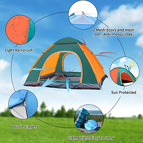 Aedcbaide Tenda pop-up, tenda da campeggio automatica a doppia porta per 2 persone, leggera impermeabile antivento protezione dai raggi UV, con borsa per il trasporto, per spiaggia, viaggi, pesca