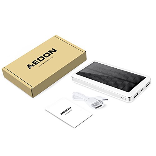 Aedon A8 Batteria Esterna da 20000mAh - Powerbank Portatile a Pannelli Solari - Caricabatterie Portatile per iPhone 6/6 Plus, iPad Air 2/mini 3, Galaxy S6/S6 Edge e Tanto Altro (bianco)