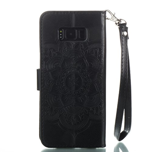 Aeeque Nero Custodia per Samsung S8 5.8", Design Portafoglio Folding Cover in PU Pelle e Cinghia Portatile Shock-Absorption Protezione Chiusura Samsung Galaxy S8 2017 con Motivo Campanula Fantasia