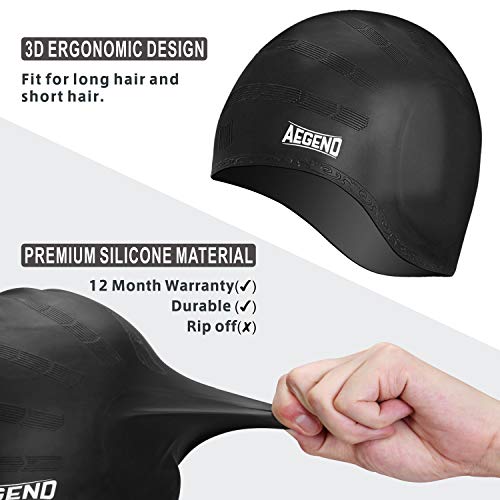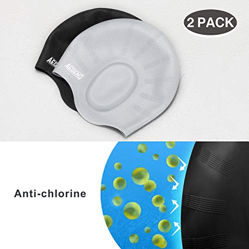 Aegend - Cuffia da nuoto unisex (2 pezzi), in silicone resistente e flessibile, per capelli lunghi e capelli corti, facile da indossare e togliere, 6 colori