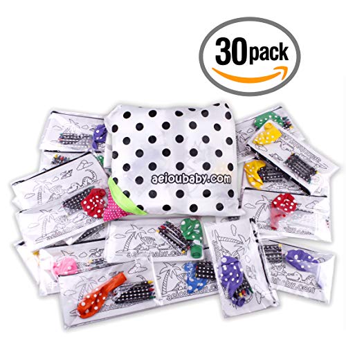 Aeioubaby.com 30 Astucci da Colorare + Borsa Riutilizzabile | 30 Bustine singole con 5 Colori a Cera e un Palloncino | Regalo per bambini per le feste e i compleanni (Dinosauri)