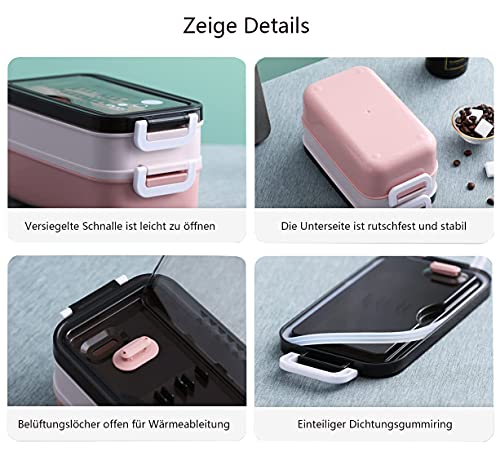 Il set per il pranzo include: 1 X 2 livelli Bento Box (1100 ml) + 1 paio di bacchette + 1 X cucchiaio + 1 X forchetta.