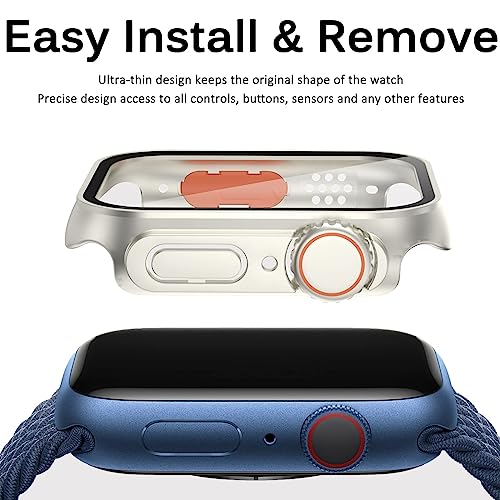 AEMALL Custodia in vetro per Apple Watch 44 mm, 45 mm, 41 mm, 40 mm, 42 mm, 38 mm, protezione dello schermo cambia ultra paraurti iWatch serie 8 7 SE 6 5 3 (colore: titanio oro, dimensioni: 45 mm)