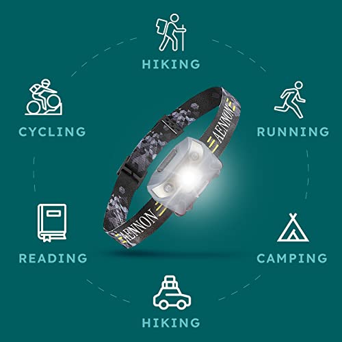 AENNON Torcia Frontale Ricaricabile (Confezione da 2) - 220 Lumen -, Batteria da 30 Ore - Lampada Frontale LED Impermeabile per il Campeggio, la Corsa, l'Escursionismo - Fari da Testa con Visione a 150m.