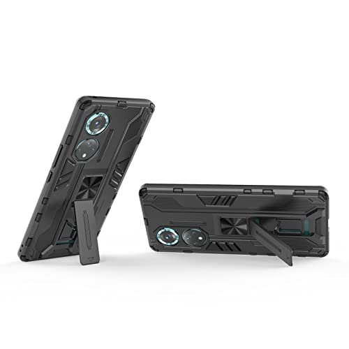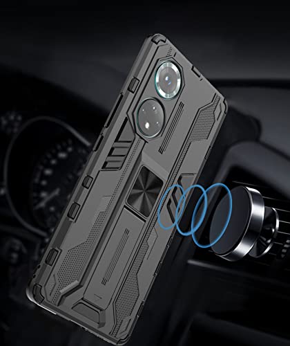 AENOCH Cover per Honor 50 Pro Custodia Silicone Antiurto con Supporto [Compatibile con Supporto Magnetico per Auto] Difesa Militare Case Bumper Custodia, Nero