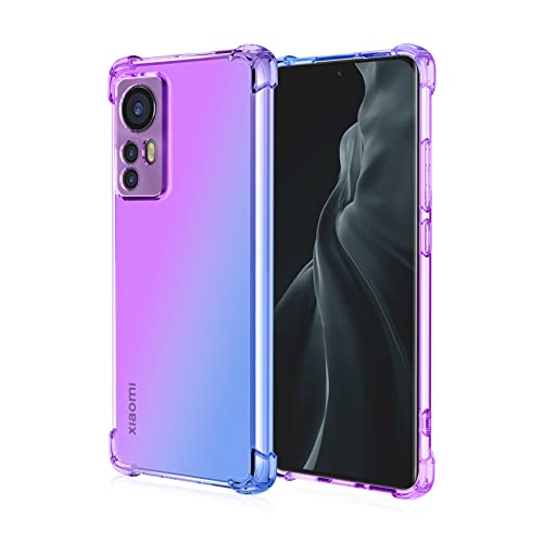 AENOCH Cover per Xiaomi 12 Pro - Custodia in Silicone di Cristallino - Dual Layer Ibrida 360° Full Body Antiurto Protettiva, Nessuna Protezione per lo Schermo, Viola/Blu