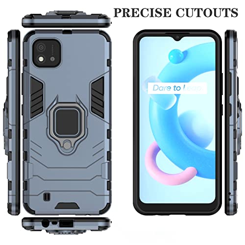 AENOCH Custodia Antiurto per Realme C21/C11 (2021) con Supporto per Anello, Funziona con Supporto Magnetico per Auto, Cover Anti-Caduta Militare PC + TPU, Blu