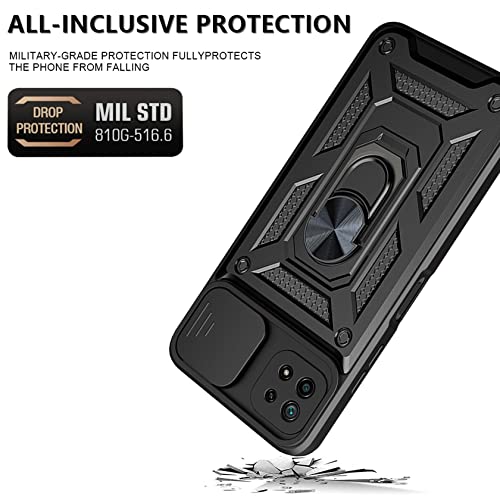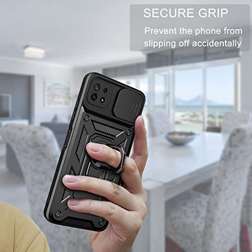 AENOCH per Custodia Samsung Galaxy A22 5G con Custodia per Fotocamera Scorrevole e Supporto per Anello [Cover Anti-Caduta Compatibile con Supporto Magnetico per Auto], Nero