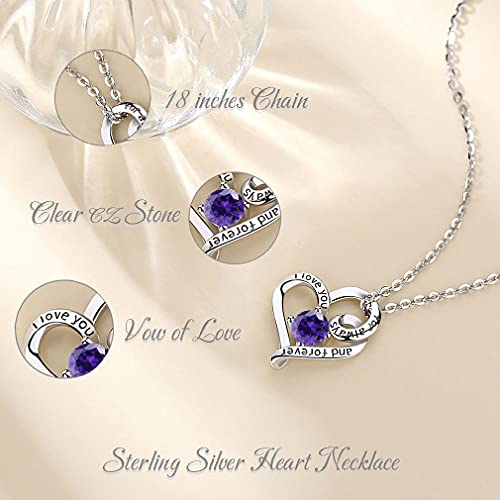 AEONSLOVE Collana Cuore Argento 925 Donna Ciondolo Collane con Birthstone di Febbraio Idee Regalo Originale Mamma Ragazza Fidanzata Lei Moglie Gioielli per Compleanno Anniversario