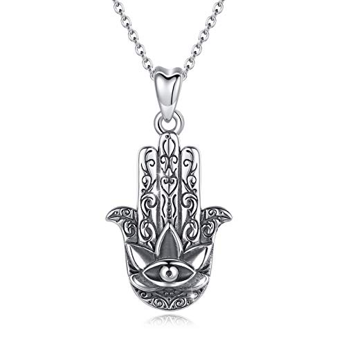 AEONSLOVE Collana Mano di Hamsa Ciondolo Mano di Fatima Malocchio in Argento Sterling 925 Gioielli Buona Fortuna per Donne, Catena da 45,7 CM