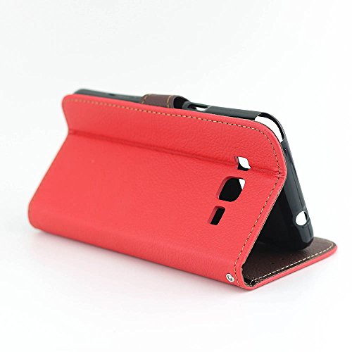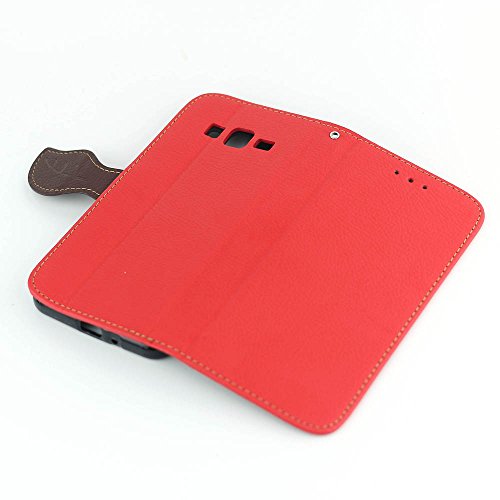 Aeontop 4 en 1 Beautiful Floral Leaf Magnetico Portafoglio Design PU Pelle Flip Stand Case With Wrist Strap Protettiva Cover per Samsung Galaxy Grand Prime G530, G530H G530FZ G5308W G5309W G5306W, Pellicola di Protezione e dello stilo Incluse,Rosso
