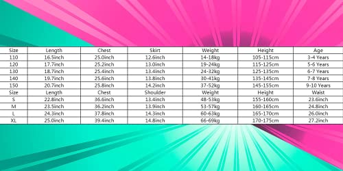 Dimensioni e manutenzione: adatto per ragazze dai 4 ai 12 anni e adulti di età S, M, L, XL. Si prega di controllare la tabella delle taglie prima di ordinare. Facile da pulire, lavare in lavatrice, asciugare in asciugatrice, lavare in lavatrice e lavare a mano, non candeggiare i bei vestiti che dobbiamo proteggere