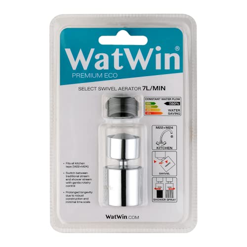 Aeratore girevole, WatWin Select M22/24 7L/min | Aeratore rubinetto | Aeratore universale con rubinetto | Risparmio idrico | Rompigetto rubinetto | Doppia funzione