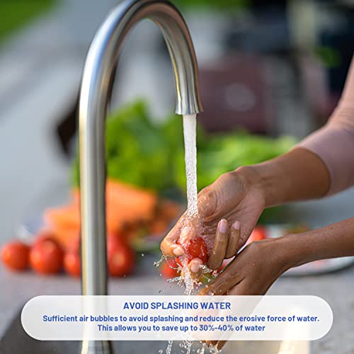 Risparmio d'acqua e resistente agli spruzzi: la ventola a risparmio d'acqua mescola completamente l'aria con il flusso d'acqua per rilasciare un flusso d'acqua con una pressione uniforme, evitare schizzi d'acqua, risparmiare acqua e può anche ridurre il rumore del rubinetto.