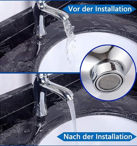 Contenuto della confezione:2 aeratori per rubinetto M24,1 chiave per ugello di miscelazione cromata.per il rubinetto del lavello della cucina o della lavatrice.