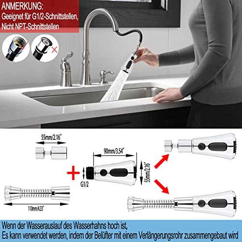 Aeratore Rubinetto Spruzzatore con Prolunga Tubo, Rompigetto Rubinetto, 360° Girevole Filtro per Risparmio Idrico, Rompigetto Risparmio d'Acqua con Adattatore Filettato per M22 a M20,M22,M24,G1/2,FM20