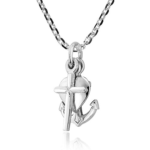 AeraVida Collana con ciondolo in argento Sterling 925 con croce a forma di cuore o fede e speranza, Metallo