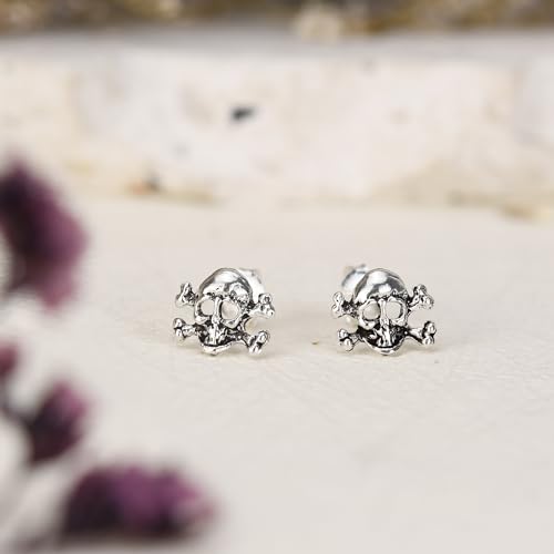 AeraVida Eleganti orecchini in argento sterling con teschio e ossa incrociate .925 orecchini in argento sterling